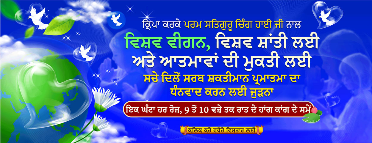 ਪਿਆਰ ਇਕ ਸ਼ਬਦ ਨਹੀ ਹੈ ਸਾਡੇ ਬੁਲਾਂ ਉਤੇ, ਪਿਆਰ ਸਾਡੇ ਜਜਬਾਤਾਂ ਅੰਦਰ ਹੋਣਾ ਜ਼ਰੂਰੀ ਹੈ, ਅਤੇ ਕਾਰਜ਼ਾਂ ਦੁਆਰਾ ਇਹਨੂੰ ਅਮਲ ਲਿਆਉਣਾ ਬਾਹਰ। ਜਾਨਵਰਾਂ ਨੂੰ ਪਿਆਰ ਕਰਦੇ ਹਾਂ, ਅਸੀਂ ਵੈਸ਼ਨੋ (ਵੀਗਨ) ਹੋਵਾਂਗੇ। ਧਰਤੀ ਨੂੰ ਪਿਆਰ ਕਰਦੇ ਹਾਂ, ਅਸੀਂ ਹਰਿਆਵਲ ਲਿਆਵਾਂਗੇ। ਸੰਸਾਰ ਨੂੰ ਪਿਆਰ ਕਰਦੇ ਹਾਂ, ਗ੍ਰਹਿ ਨੂੰ ਬਚਾਵਾਂਗੇ। - ਪਰਮ ਸਤਿਗੁਰੂ ਚਿੰਗ ਹਾਈ ਜੀ (ਵੀਗਨ)